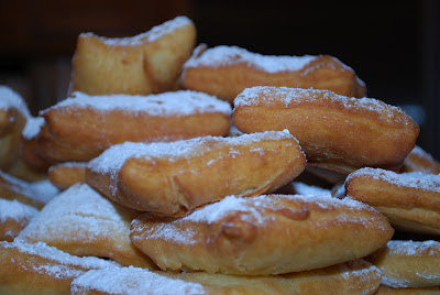 We got ambitious and tried out making Beignets. I was so excited about it I could hardly stand it. It was a fairly easy recipe that involved yeast and that no longer scares me so, we were good to go. But, I believe I made some mistakes in the steps or something. Because as yummy as these looked....umm....lets just say, you might be able to down one but, only if you were drinking a lot of water! Oh well ( and that's a deep subject)